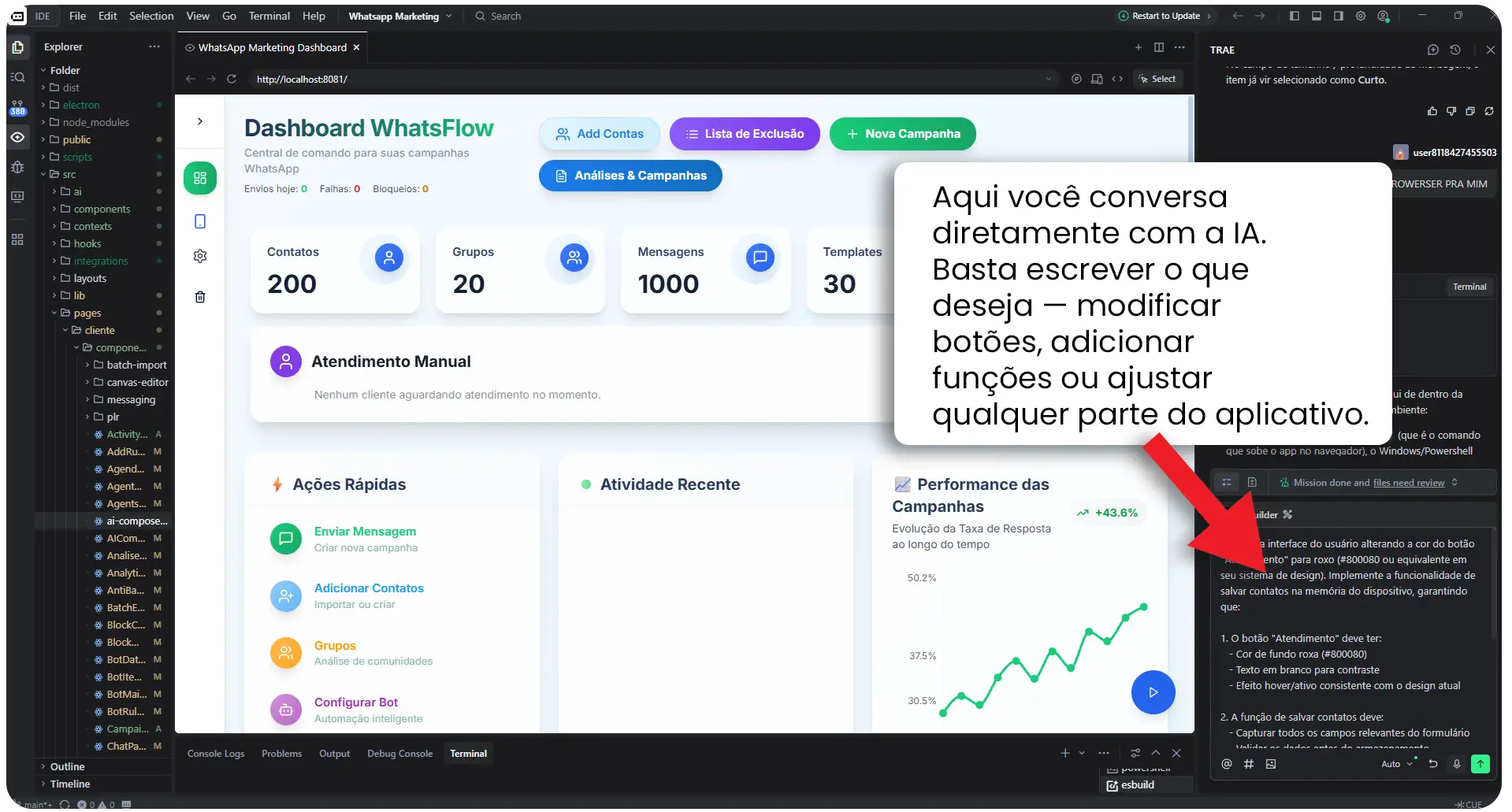 Aqui no curso eu vou te ensinar a usar a ferramenta TRAE, ferramenta sensacional e altamente intuitiva. Tudo que você pede ela vai criando com total perfeição.